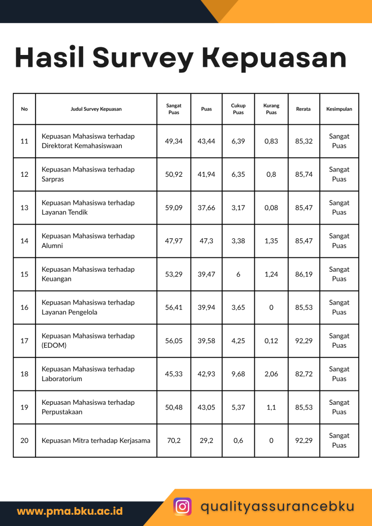 | 11 | Kepuasan Mahasiswa terhadap Direktorat Kemahasiswaan | 85,32 | Sangat Puas |